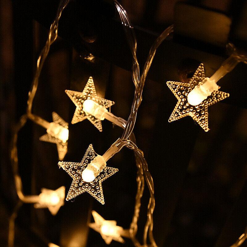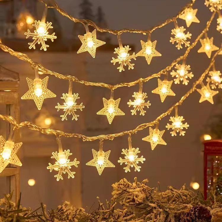 Elegant Christmas star string lights to enhance festive ambiance and create magical, romantic scenes for holiday celebrations.