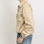 Lightweight classic khaki jacket with retro cadre collar and front zip closure, perfect for stylish layering in mild weather.