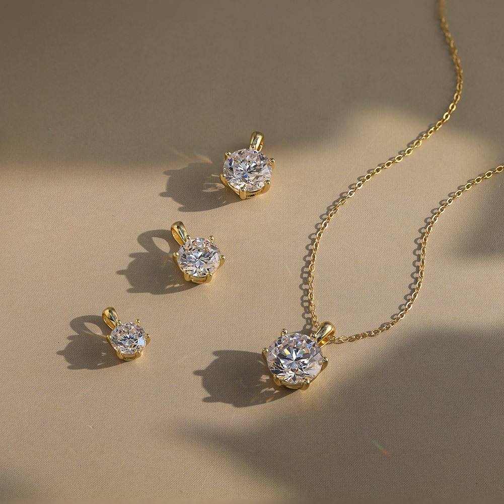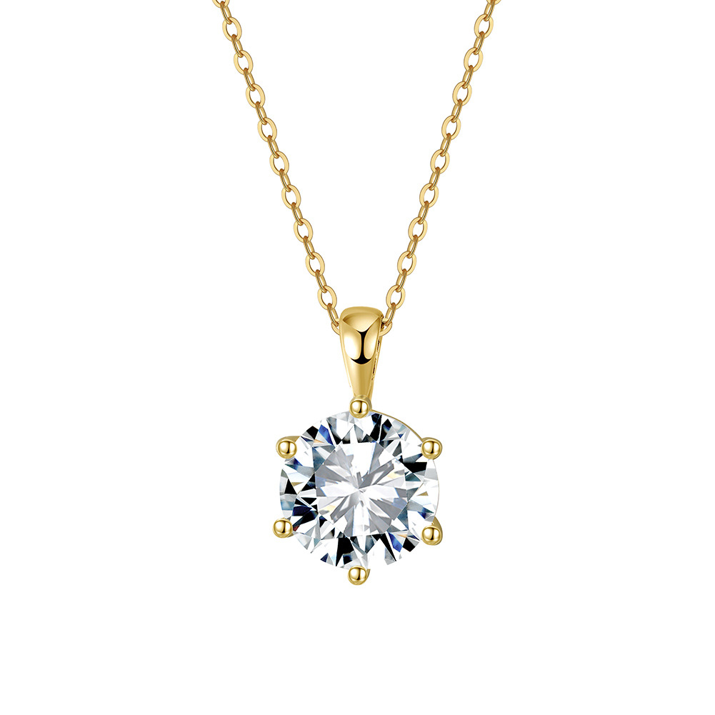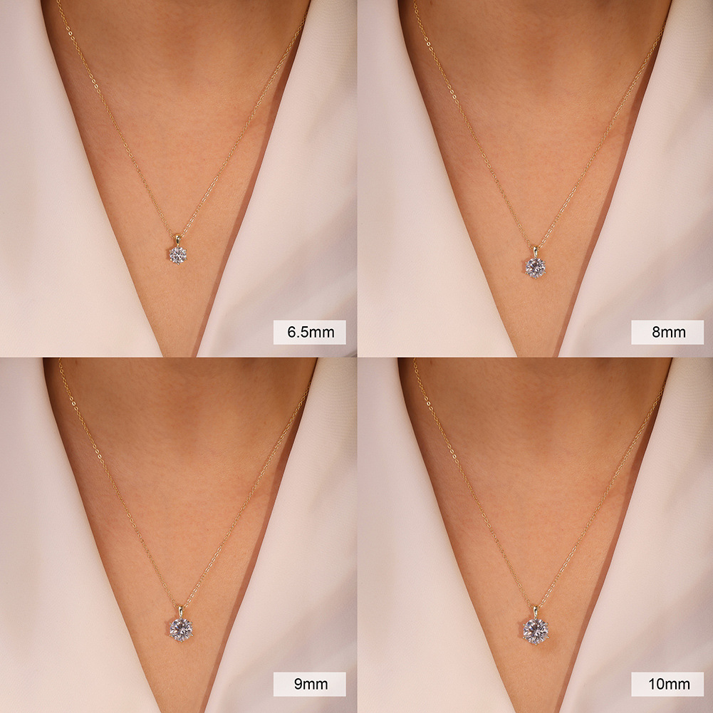 Elegant six-claw moissanite pendant necklace crafted in silver, featuring timeless design and sparkling brilliance for any occasion.
