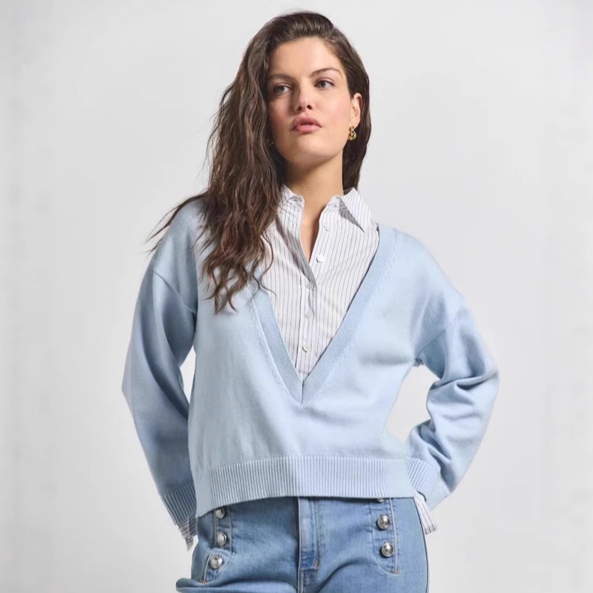 Stylish women’s two-piece pullover sweater with detailed collar stitching for a layered look and comfortable fit.