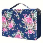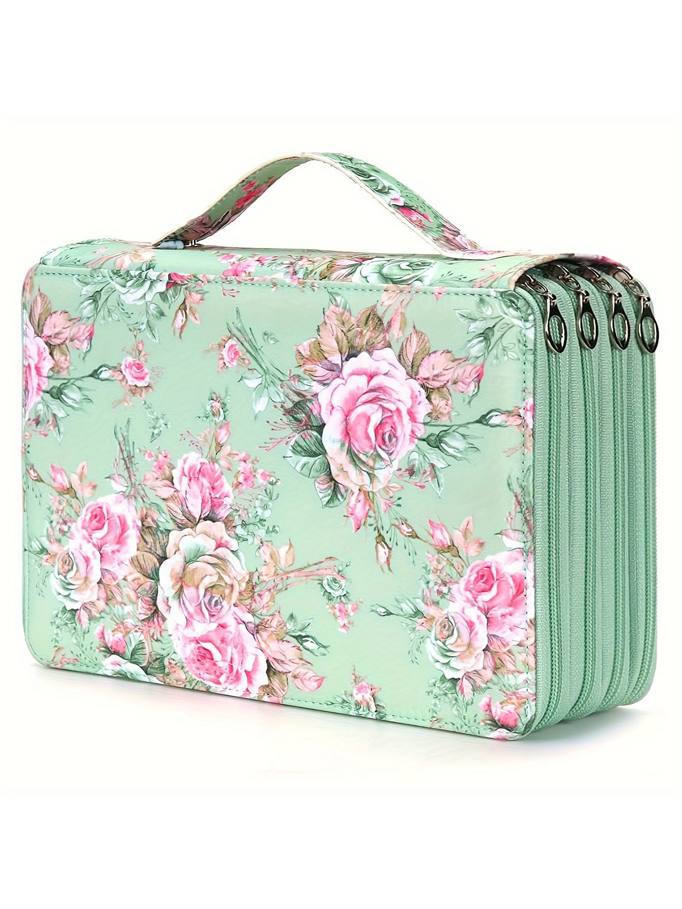 Multi-layered zipped pencil case with large capacity for organized storage of pens and stationery items.