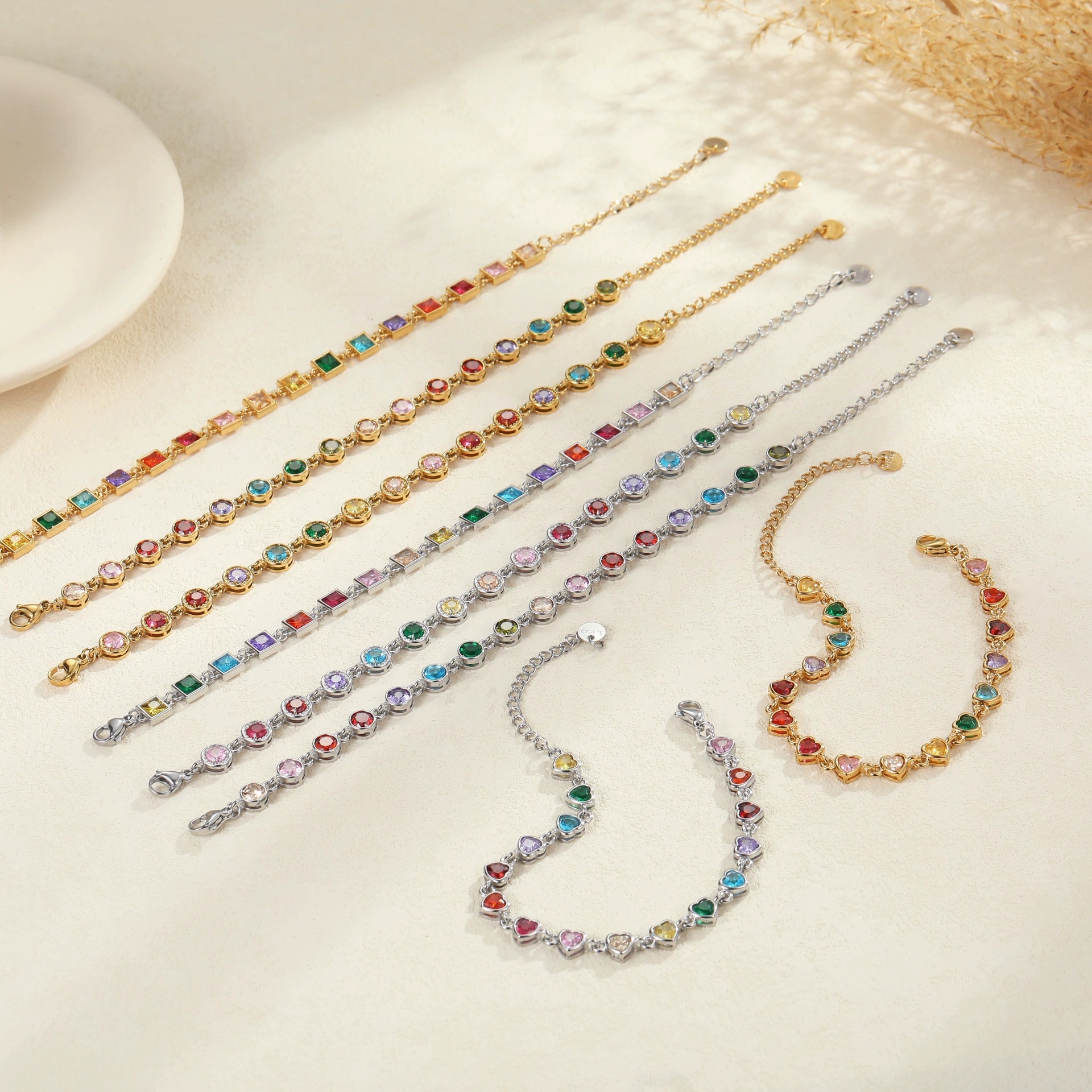Durable stainless steel bracelet adorned with colorful zircon stones, combining style and resilience for everyday elegance.