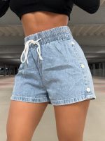 Slimming elastic pure color denim shorts designed for commuters, offering comfort and a flattering fit with versatile styling options.