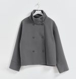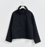 Elegant commuter woolen coat featuring a versatile stand collar and double-breasted front for refined cold-weather style.