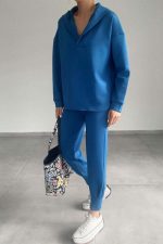 Comfortable two-piece hooded sweatshirt and pants set designed for casual commuting and everyday wear.