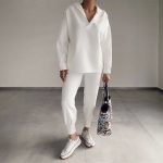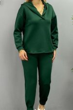 This two-piece set features a hooded sweatshirt paired with matching pants, crafted for casual commuting and relaxed daily use. The sweatshirt includes a convenient hood and long sleeves, while the pants offer a comfortable fit suitable for extended wear. Made from soft, breathable fabric, the ensemble ensures both comfort and style for everyday activities. Its casual design and neutral color options make it versatile for various occasions, providing a balance between functionality and modern casual fashion.