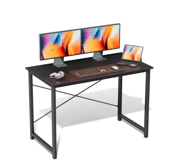 Space-saving modern computer desk with storage bag and headphone hook, ideal for gaming, writing, and study in small areas.