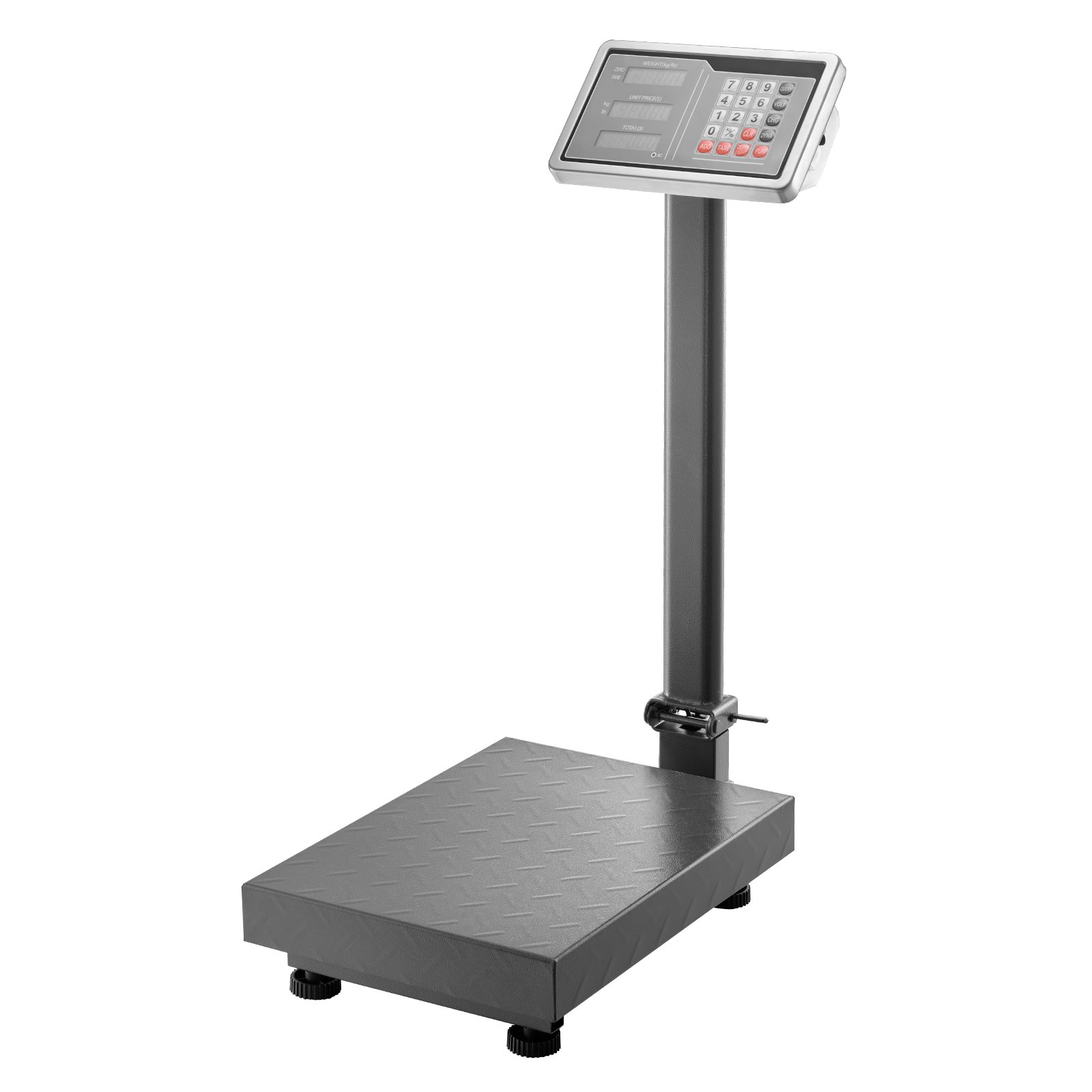 This electronic computing digital platform scale features a maximum load capacity of 220 pounds and a precision accuracy of 0.04 pounds, making it suitable for weighing luggage, shipping parcels, and postage items. Equipped with an easy-to-read digital display, the scale supports weight units in pounds and kilograms. Its tare function allows for convenient subtraction of container weight during measurement. The built-in price calculator facilitates cost assessment based on weight input. Power options include both AC and DC supply, enabling versatile usage in various settings. The sturdy platform design ensures stable placement and reliable performance for commercial and personal applications.