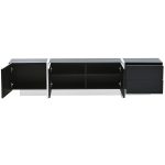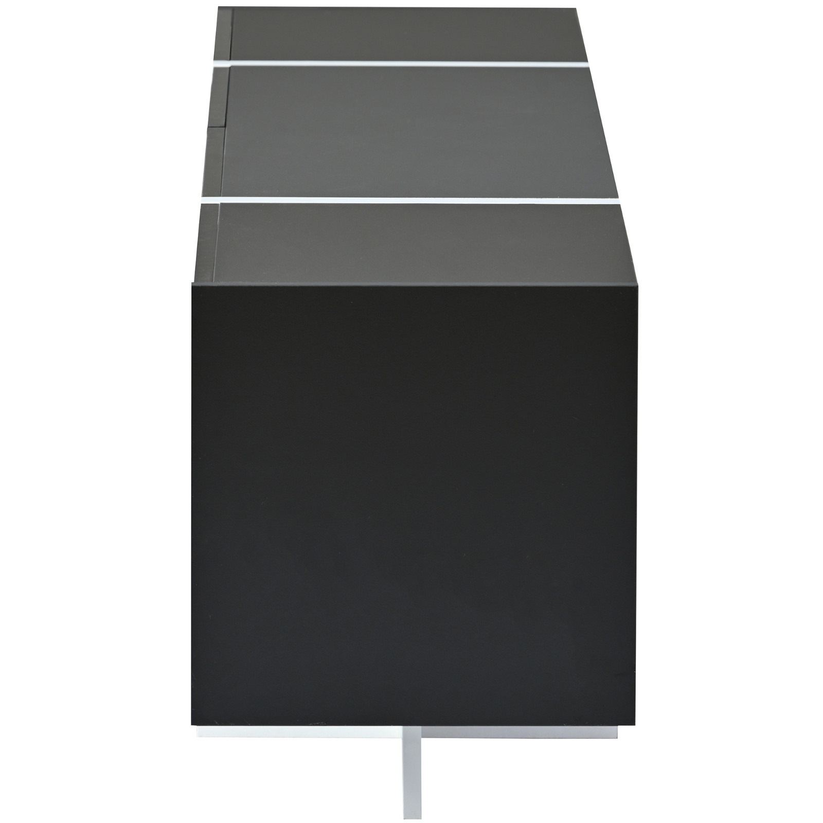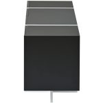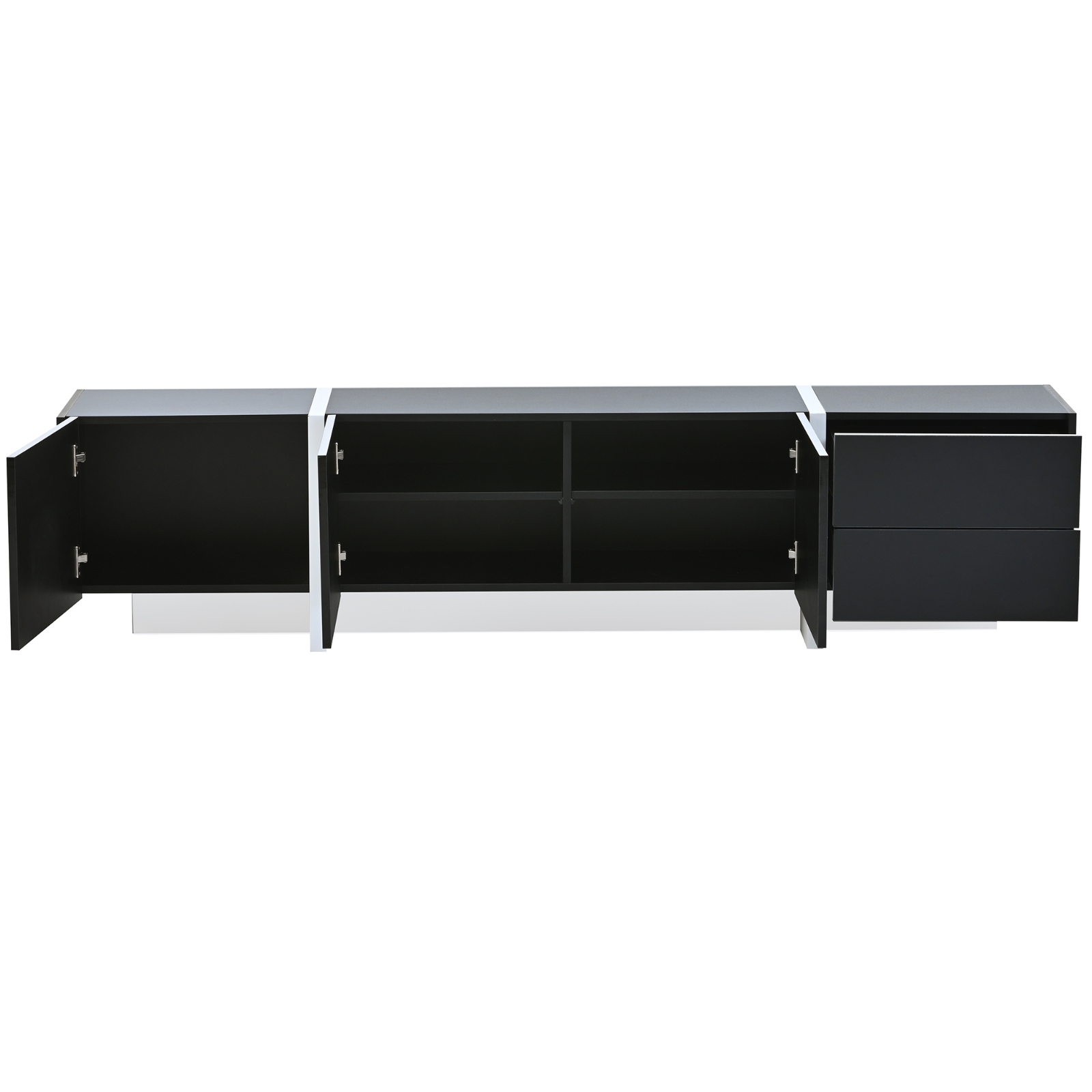 This contemporary TV stand combines white and black finishes to create a distinctive and modern console suitable for various TV sizes. Crafted for both style and functionality, it offers ample surface area to accommodate your television while complementing your living space. Its unique design ensures a stylish addition to any room, providing practical storage and an elevated display platform for electronics and accessories.