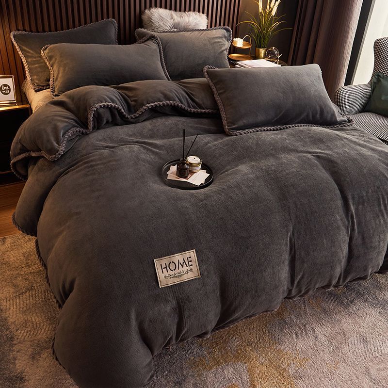 Soft and thick Coral Fleece plus Velvet duvet cover offering warmth and comfort with a plush texture for a cozy bedroom environment.