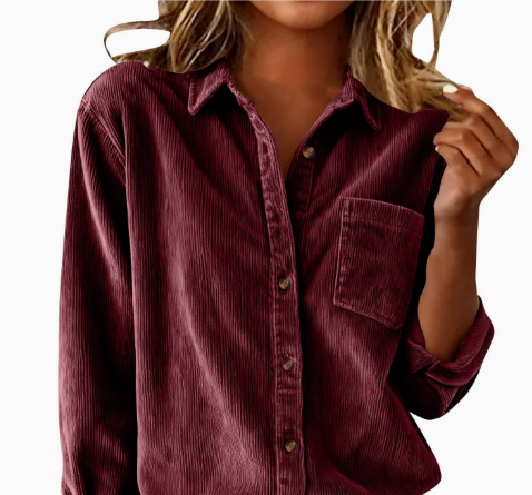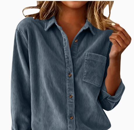 Be the first to review “Corduroy Casual Loose Thick Shirt With Striped Turn-Down Collar And Long Sleeves”