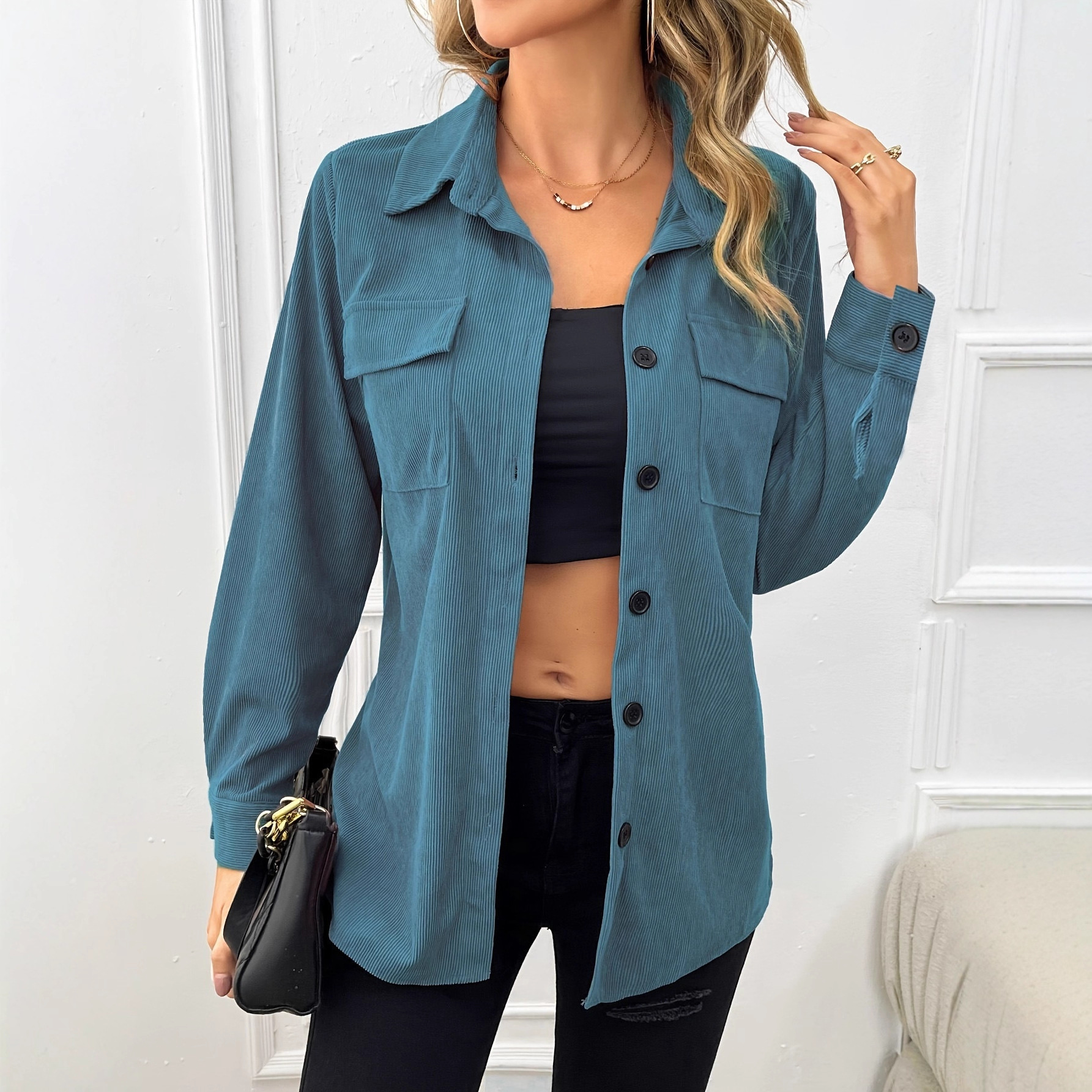 Be the first to review “Corduroy Lapel Shirt Vintage Cardigan Pocket Shirt Coat Women” Cancel reply