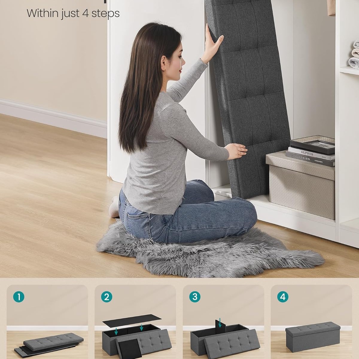 Durable cotton and linen folding storage stool for versatile home organization and seating solutions.