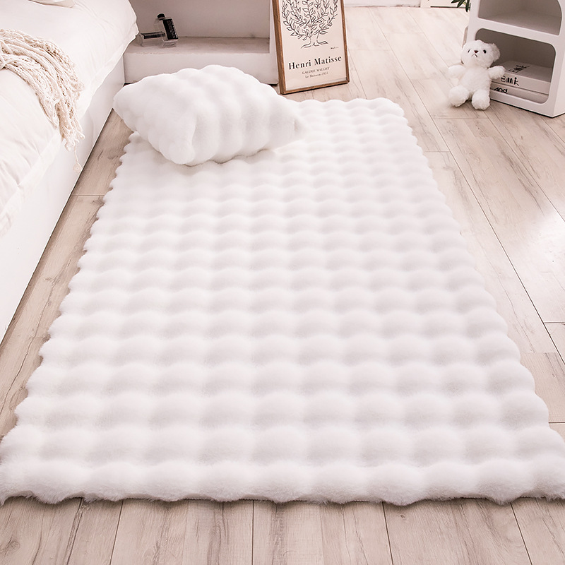 Soft, creamy bubble-fleece rug designed for living room bay windows, adding comfort and warmth to your space.