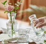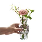 Stylish small glass vase ideal for water-based green plants and fresh flowers, perfect as a decorative desktop ornament.