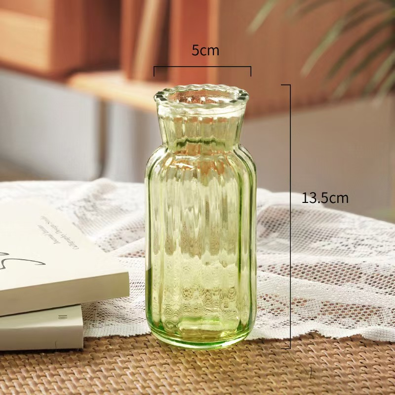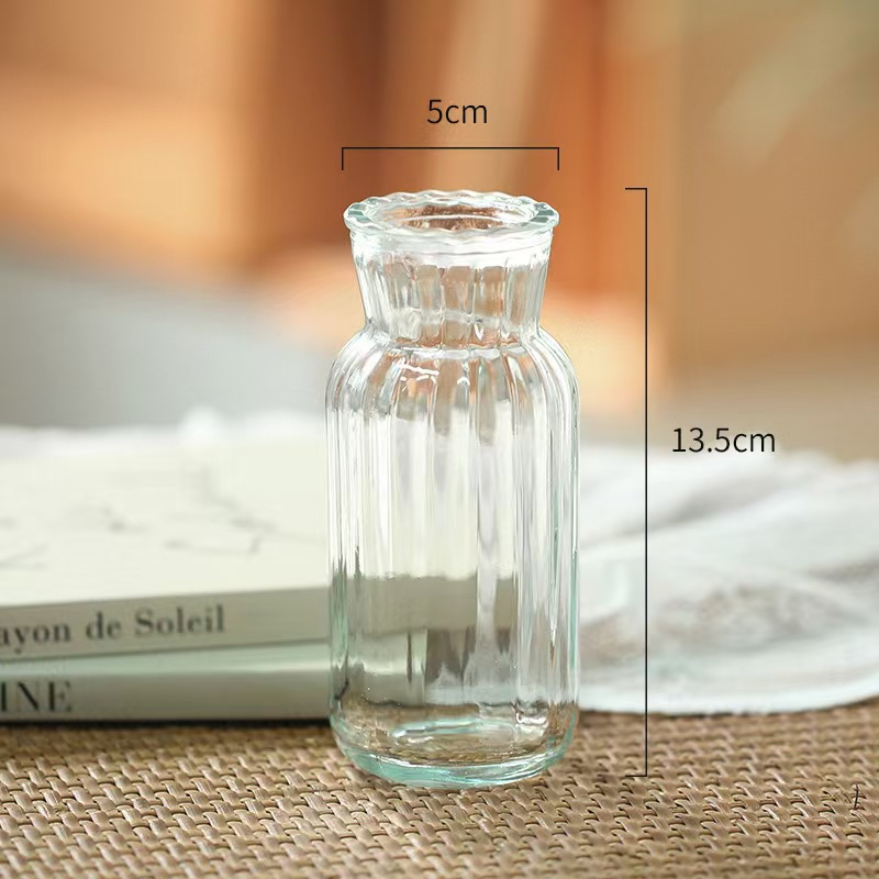 This elegant glass vase is designed specifically for water-based green plants and fresh flower arrangements. Its compact size makes it an ideal decorative piece for desktops, countertops, or shelves. Crafted from clear, high-quality glass, it showcases the natural beauty of plants while providing a stable container for water. The minimalist design complements a variety of interior décor styles, adding a subtle yet sophisticated touch to any space. Suitable for small green plants or fresh-cut flowers, this vase enhances the ambiance of home or office settings with its transparent clarity and functional simplicity.