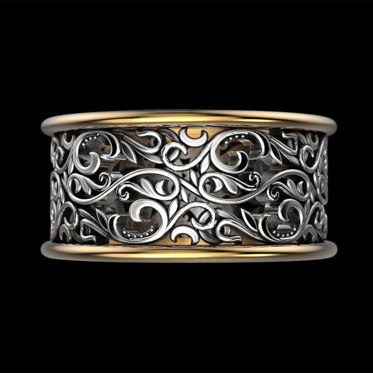 Stylish men’s ring featuring a creative retro hollow pattern design crafted from durable alloy material.