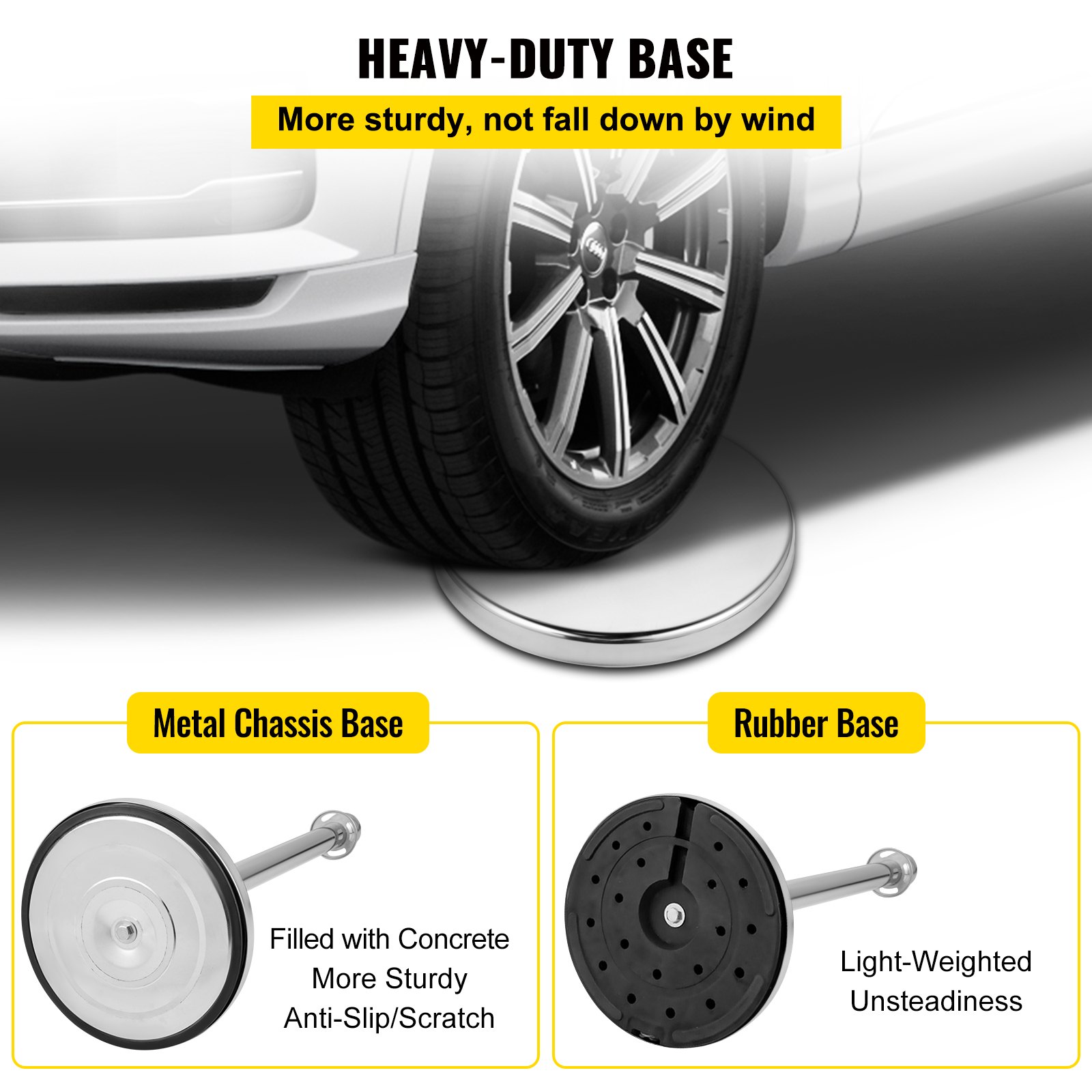 Features & Details Durable Material: The silver crowd control stanchions are constructed by 201 stainless steel posts and zinc alloy lobster clasps, durable, and not afraid of high temperature. Moreover, this durable material features waterproof and rustproof to adapt to indoor and outside. Extended Velvet Rope: Our crowd control barrier is equipped with four red velvet ropes that are eye-catching. The elegant rope is made of flannel material, thicker, and not easy to break. Besides, the rope measures 5 ft/1.5 m long, providing a larger area for your various demands. Heavy-Duty Base: These 12.6in stable base are filled with heavy-duty concrete, which is strong enough to against the strong wind and hard to be pushed down by the crowd. In addition, This metal chassis is designed for maximum protection against floor scuffing and stanchion itself. Easy Installation: There are four adapters at the top of each stanchion post for velvet rope to connect. Furthermore, each rope has hooks at both ends to allow you to attach the rope to the pillars easily and quickly. You don’t need to use other auxiliary tools, and you can set it up in a few minutes. Widely Used: Our stainless steel stanchion is a good choice for crowd control because of its high quality. As a result, it is commonly used in theaters, hotels, casinos, red carpet events, ticket offices, and so on.