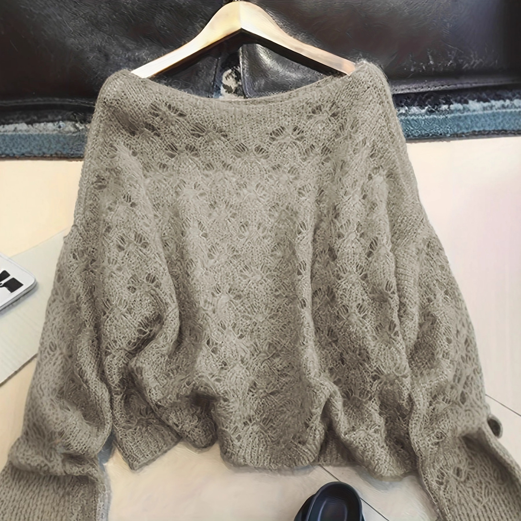 This high-quality knitted top showcases a thin, loose fit crafted for comfort and style. Designed with distinctive cutout details, the blouse effortlessly combines sophistication with a youthful appeal. Its all-matching design makes it suitable for various outfits, providing a polished yet relaxed look. The pullover style enhances convenience while maintaining a refined aesthetic, ideal for those seeking a versatile and fashionable wardrobe staple.