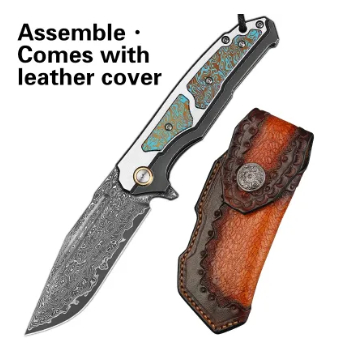Durable Damascus steel folding knife designed for outdoor survival and everyday use with a sharp, resilient blade.