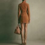 Elegant deerskin velvet long-sleeve dress with zipper and short skirt for a refined, stylish look.