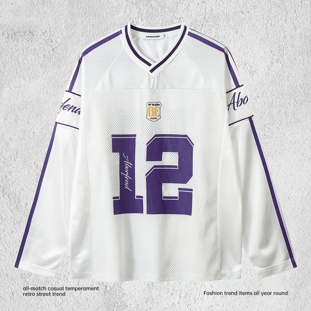 Be the first to review “Digital Printed Long-sleeved T-shirt Jersey Contrast Color V-neck Top” Cancel reply