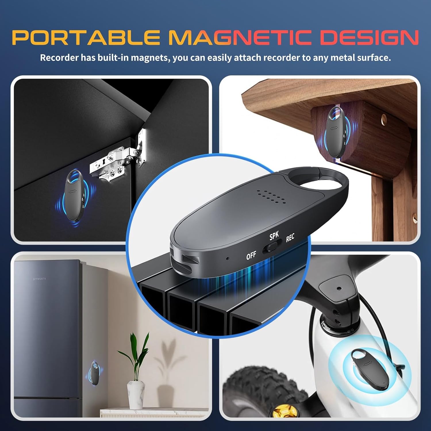 This compact 4-in-1 digital voice recorder features voice activation and AI-powered noise cancellation to capture clear audio in various environments. Designed as a mini magnetic keychain device, it offers easy portability and discreet recording during lectures, meetings, and other important events. The built-in playback function enables immediate review of recordings without additional equipment, enhancing convenience. Its small form factor ensures the device is unobtrusive while maintaining high-quality sound capture, making it ideal for professionals, students, and anyone requiring reliable audio documentation.