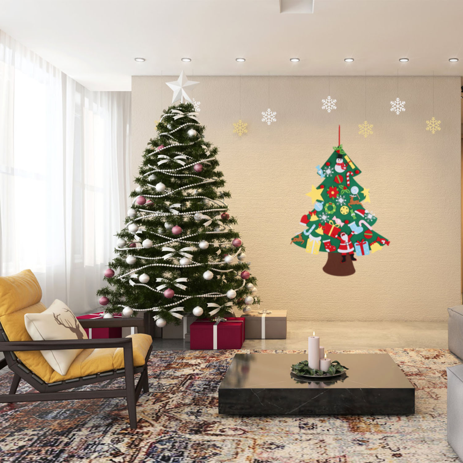 Interactive DIY felt Christmas tree with 41 detachable ornaments, perfect for toddler wall decoration and festive holiday gifting.