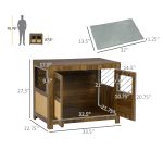 This decorative dog crate contains the sleepy comfort of a pillowy surface inside, featuring soft foam and a removable cover that’s washable for easy cleaning. The large doors make for a big entrance that allows easy in and out. An end table design offers furniture that both you and your pup can enjoy. The structural integrity you need for a lifetime will retain its durability for years to come when you make this relaxing Pawhut design a part of your home. Features: – Comfortable soft foam cushion inside for a cozy interior – Removable machine washable cushion cover zippers on and off for easy cleaning – Large entrance makes it easy to enter and exit – Use as an end table for drinks, keys, plates, etc. – Strong load-bearing to hold heavy items and tons of stuff – Suitable for small and medium-sized dogs up to 33 lbs. with a body length less than 25.5″ – Assembly required Specification: – Color: Walnut, Dark Gray – Material: Steel, Particle Board, Oxford, Velvet, PE Rattan, Foam – Overall Dimensions: 33.5″ L x 22.75″ W x 27.5″ H – Interior Cage Dimensions: 32.5″ L x 21.75″ W x 21″ H – Front Double Door Dimensions: 14.5″ W x 20.75″ H (Single) – Window Dimensions: 10.75″ W x 7.5″ H (On Door), 17.5″ W x 9.5″ H (On Sides) – Cushion Dimensions: 32″L x 21.5″W x 1.25″H – Leg Height from the Ground: 2″ – Weight Capacity: 110 lbs.(main room), 220 lbs.(top) – Item label: D02-122V80DW Package Includes: – 1 x Small Breed Dog Crate – 1 x Manual This dog kennel furniture withstands heavy-duty load-bearing on its strong tabletop, allowing ultra-stability with hefty objects and accumulations of heavy items. The top opens to give you access to your pup for whatever you need, allowing you to reach in and give them a treat. This PawHut design will provide convenience whether you’re setting your groceries down or giving your pup something fun. Features: – Spacious interior and long and wide, roomy tabletop – Ultra-stable with heavy-duty items accumulating, offering a 132 lb. capacity – Openable top gives you access to your pup to pet them or give them something – Wooden surface is easy to clean with a quick wipe down – Large single room: for small dogs under 13.8″ in body length, up to 22 lbs. – Assembly required Specification: – Color: Nutmeg Brown, Midnight Black – Material: Steel, Particle Board, MDF – Overall Dimensions: 35.5″ L x 19.75″ W x 22″ H – Interior Cage Dimensions: 32.75″ L x 18″ W x 19″ H – Door Dimensions: 17″W x 8.75″H (Single) – Leg Height from the Ground: 1.75″ – Weight Capacity: 132 lbs. – Item label: D02-124V00DR Package Includes: – 1× Dog Cage – 1× Manual.