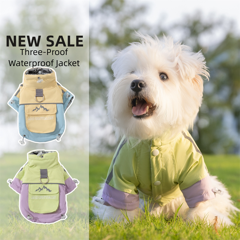 Autumn dog windbreaker with three-proof design, warm cotton lining, perfect for small and medium-sized dogs outdoors.