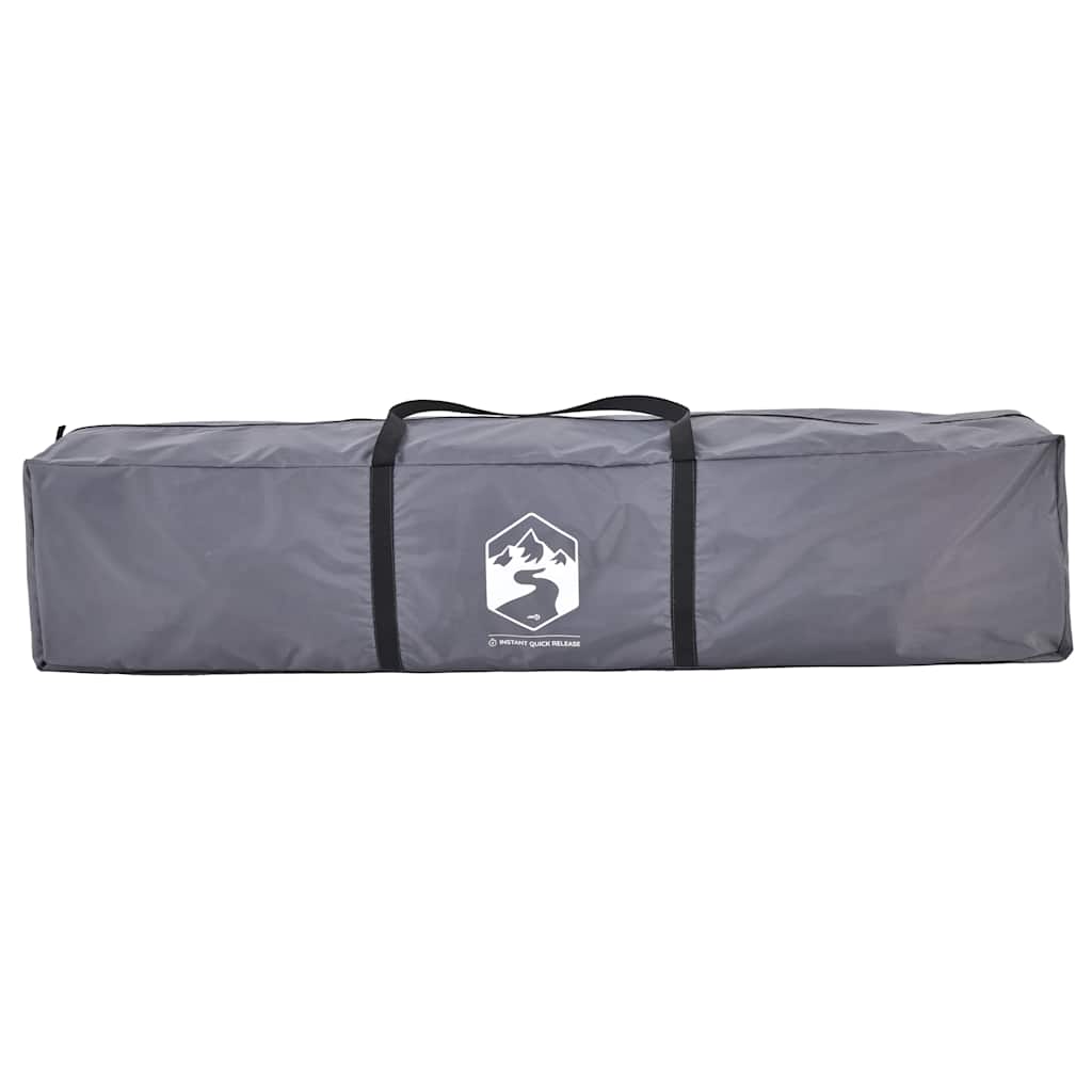 Dieses moderne Familienzelt schützt vor unangenehmen Wetter und bietet einen komfortablen Platz bei Abenteuern. Rundum wasserdichtes Design: Aus Polyester mit PU-Beschichtung gefertigt, ist dieses Campingzelt wasser- und winddicht. Die versiegelten Nähte verhindern effektiv das Eindringen von Regenwasser, während die strapazierfähige Bodenplane für ein trockenes und komfortables Interieur sorgt.Quick-Release-System: Dank des Quick-Release-Systems lässt sich das Zelt mühelos aufbauen! Lege das Zelt auf den Boden, ziehe das vormontierte Gestänge heraus, bis es einrastet, und schon ist das Zelt einsatzbereit!Abnehmbares Überzelt: Das abnehmbare Überzelt lässt sich an der Zeltoberseite befestigen, um Wetterschutz zu bieten und Privatsphäre zu schaffen.Praktischer Zugang zum Stromkabel: Dank des E-Anschlusses kannst du ganz einfach ein Verlängerungskabel von einer externen Stromquelle an dein Zelt anschließen.Leicht und tragbar: Dank des faltbaren und leichten Designs lässt sich das Zelt einfach verpacken und in der mitgelieferten Tragetasche mühelos verstauen und transportieren. Achtung:Halte alle Flammen und Wärmequellen von diesem Zeltstoff fern. Das Produkt ist nicht für Witterungsbedingungen wie starken Wind, Schneefall und extreme Wetterbedingungen geeignet.