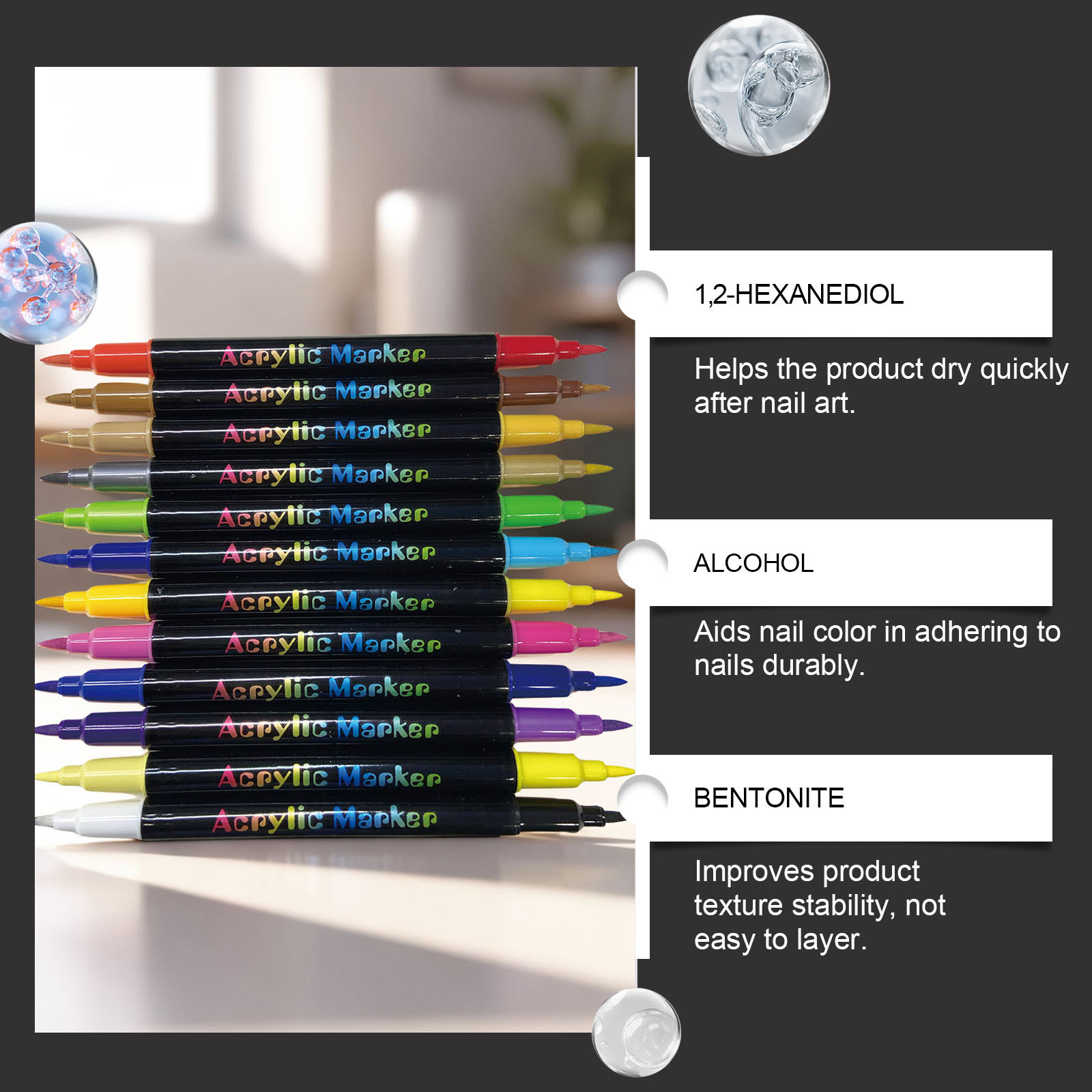 Professional double-ended nail art pen set featuring fine tips for detailed and creative nail designs, suitable for DIY manicures and salons.
