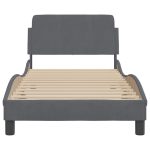 Elegant Dover bed frame in dark grey velvet, measuring 90×190 cm, combining style and durability for a modern bedroom.