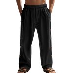 Stylish men’s solid color casual pants featuring a drawstring waist and side button accents for comfort and a tailored fit.