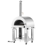 Portable 26-inch dual fuel pizza oven with pellet and gas options, thickened cordierite stone, and easy mobility for camping and backyard use.