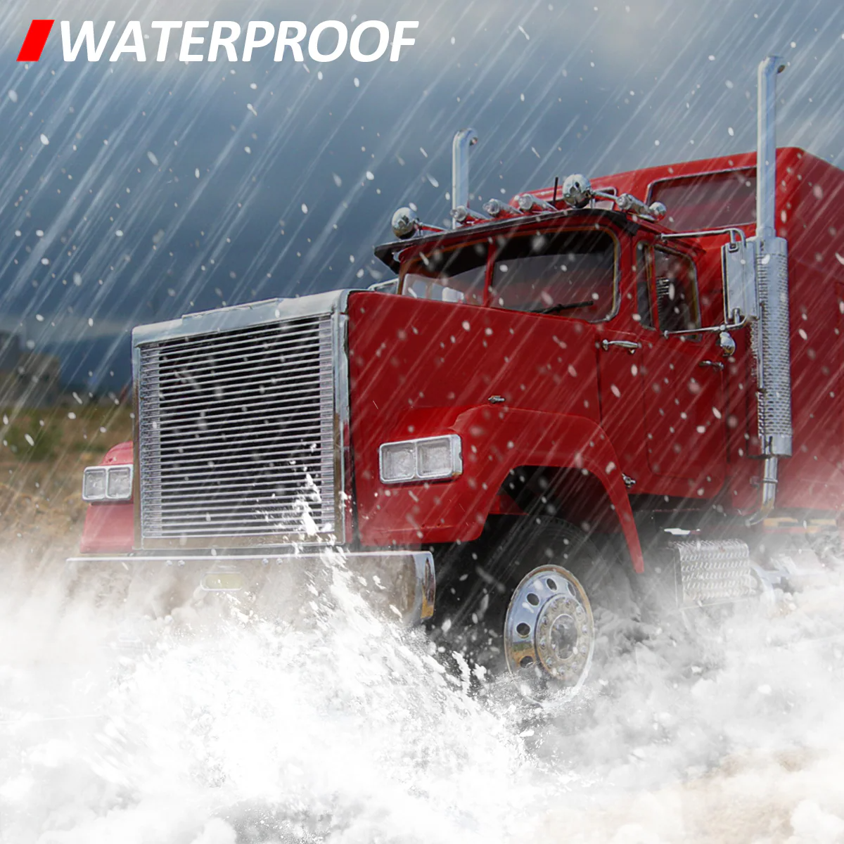 This dual rectangular 4×6 light headlight bezel is equipped with 12 amber LED strips and a clear lens, designed specifically for heavy-duty trucks including Kenworth T400, T600, T800, W900B, W900L, Peterbilt 378, 379, and Western Star 4900 models. The assembly provides enhanced visibility and a modern lighting appearance, combining white LED illumination with amber indicator lights for improved safety on the road. Crafted for durability and optimal fit, this bezel ensures reliable performance while seamlessly integrating with the vehicle’s front lighting system.