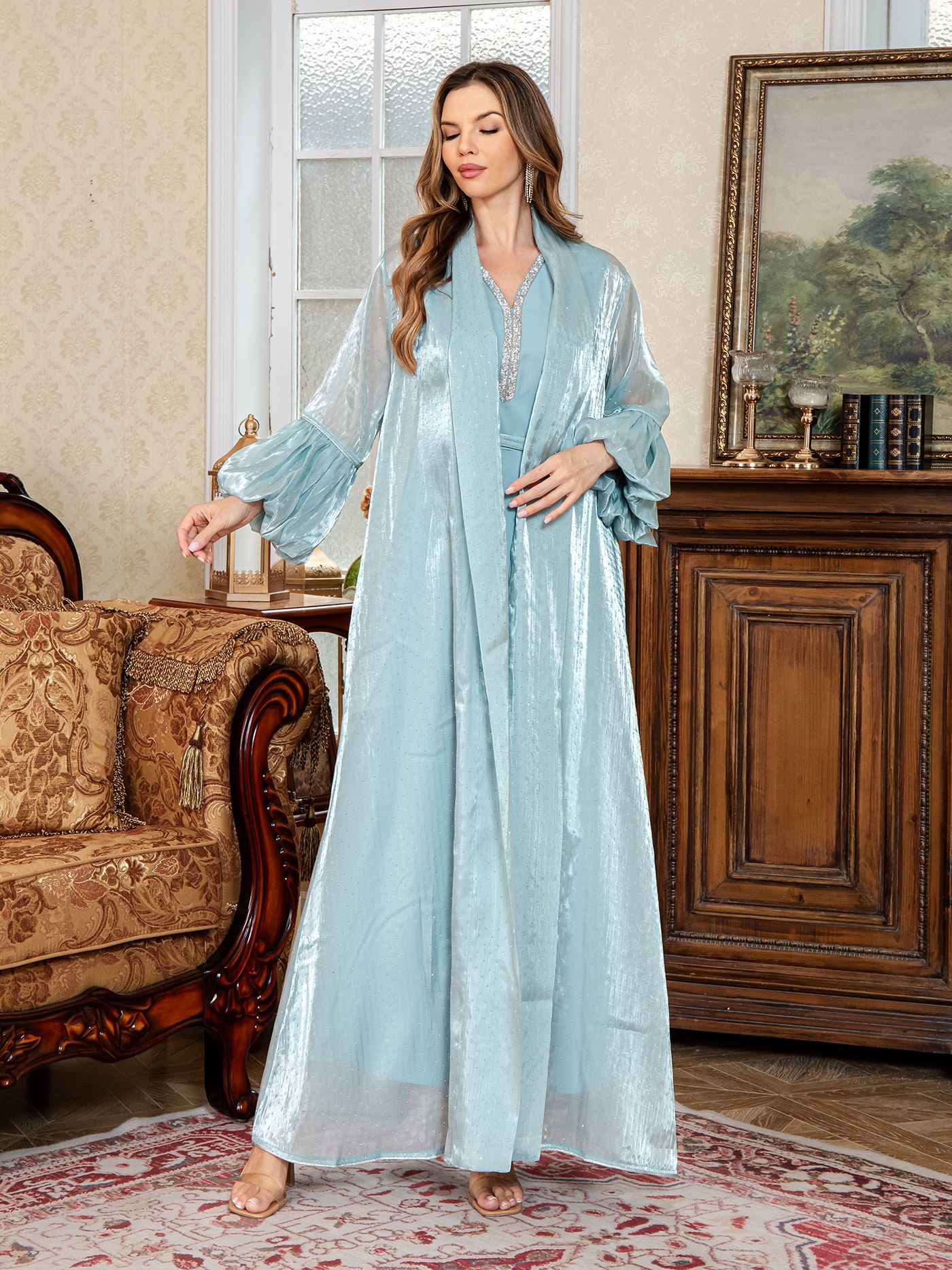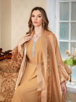 Refined Dubai two-piece set dress in elegant Arabic style, perfect for formal occasions with a sophisticated design.