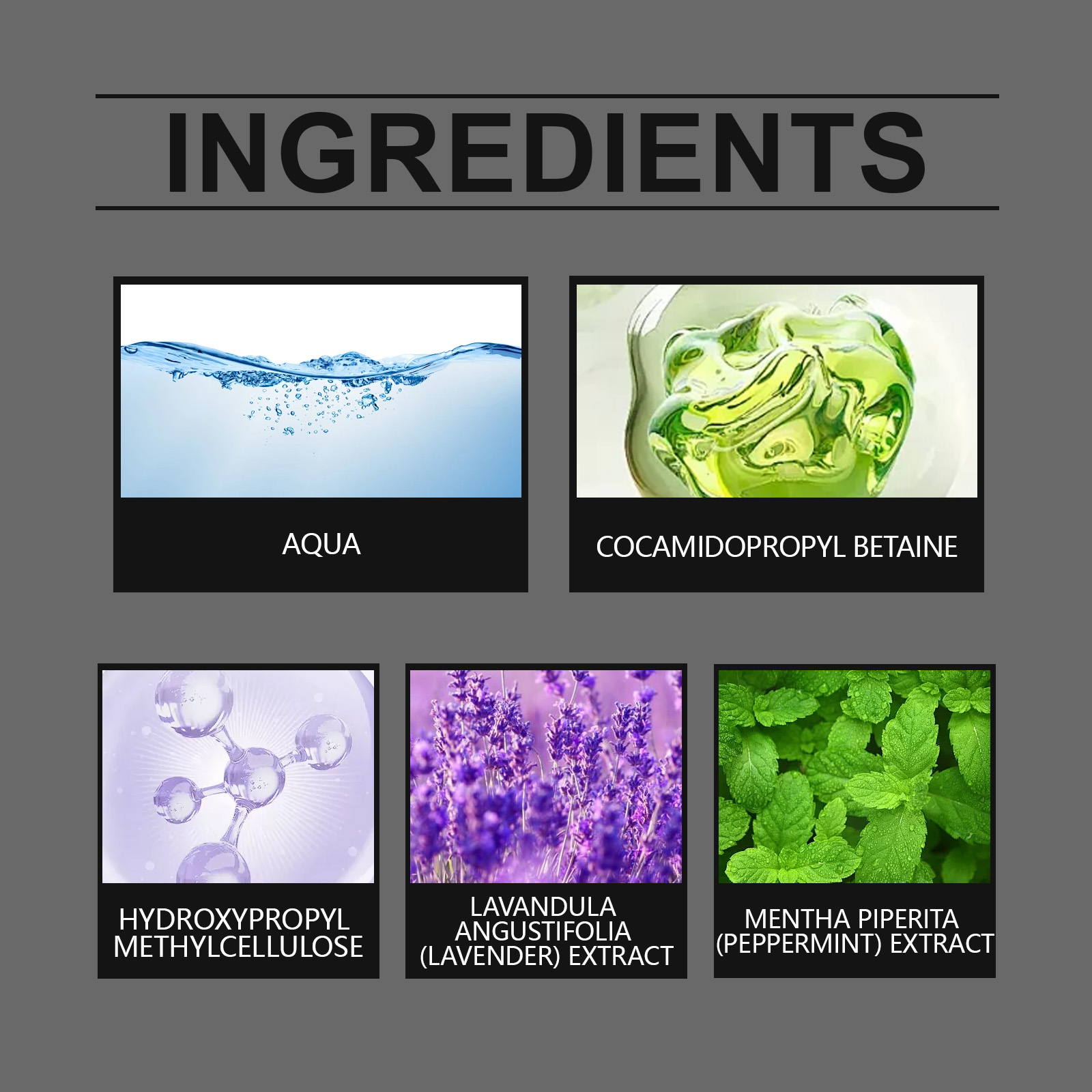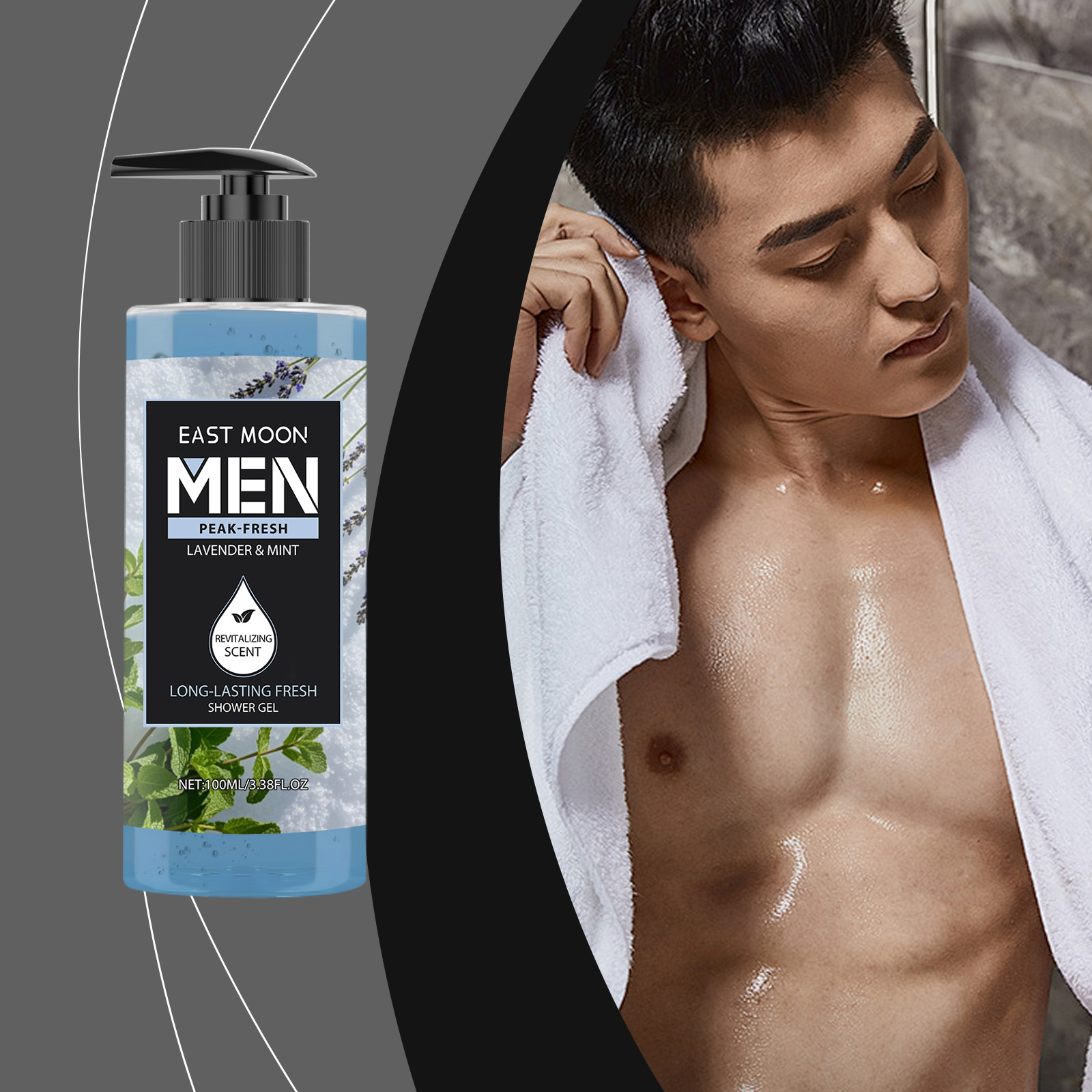 Gentle shower gel with peppermint and lavender for refreshing, moisturizing, and cleansing the body effectively.