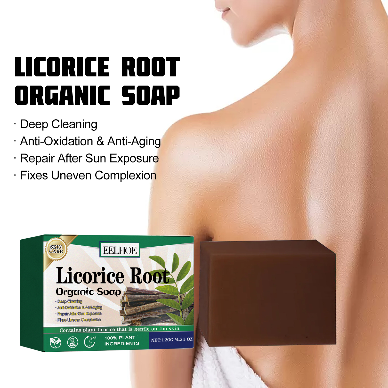 EELHOE Licorice Root Whitening Soap effectively cleanses, moisturizes, and whitens skin while reducing melanin and brightening joints.