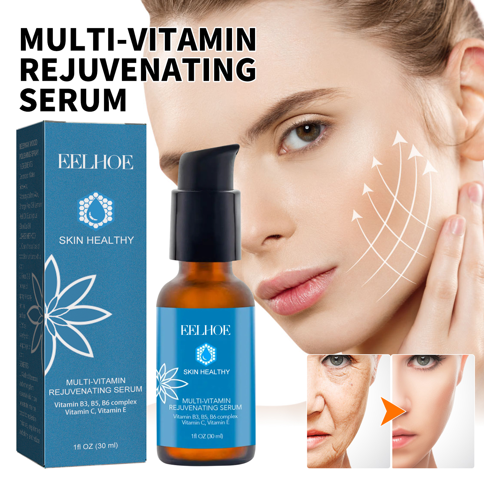 EELHOE Multi-vitamin Rejuvenating Serum delivers firming, hydrating, anti-wrinkle, and anti-aging benefits for youthful skin.