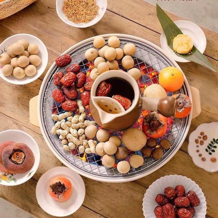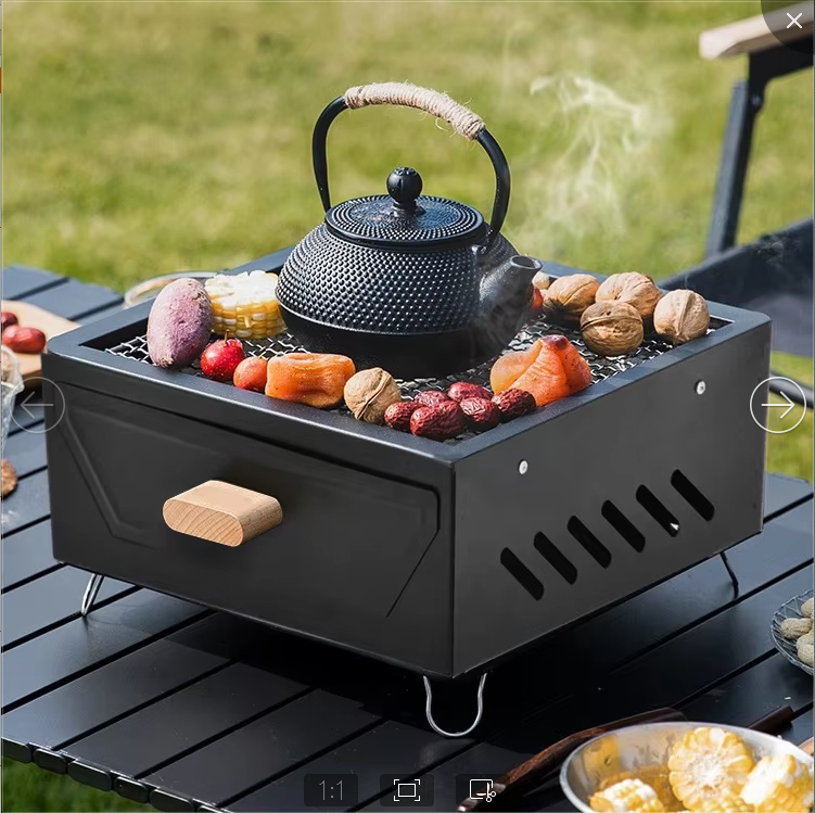 Dual-purpose electric and carbon stove designed for efficient tea boiling around the stove area.