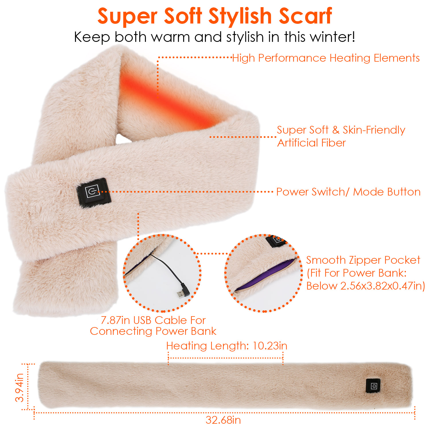 This electric heated scarf provides reliable warmth through a USB-powered heating element integrated into a soft and comfortable neck wrap. Designed for unisex use, it features three adjustable heating levels to suit varying temperature preferences during winter. Crafted from gentle, insulating fabric, the scarf ensures long-lasting comfort while keeping the neck and shoulders cozy. Its flexible design allows for easy wearing and portability, making it an ideal accessory for cold weather activities or everyday use. The USB power source enables convenient recharging and operation with compatible devices.