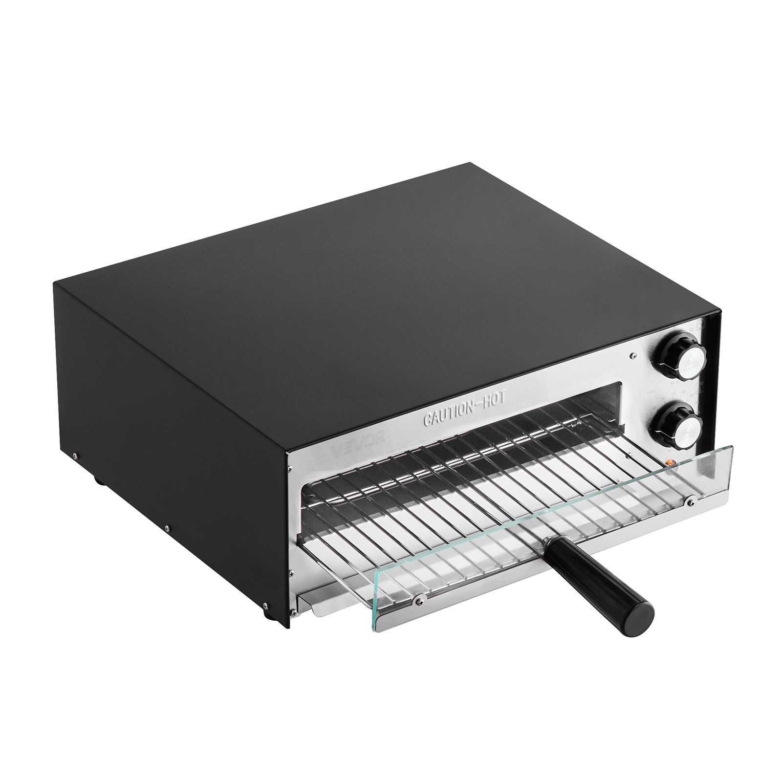 High-power 12-inch electric pizza oven reaches 572°F with dual heat tubes, timer, and crumb tray for perfect indoor pizza cooking.