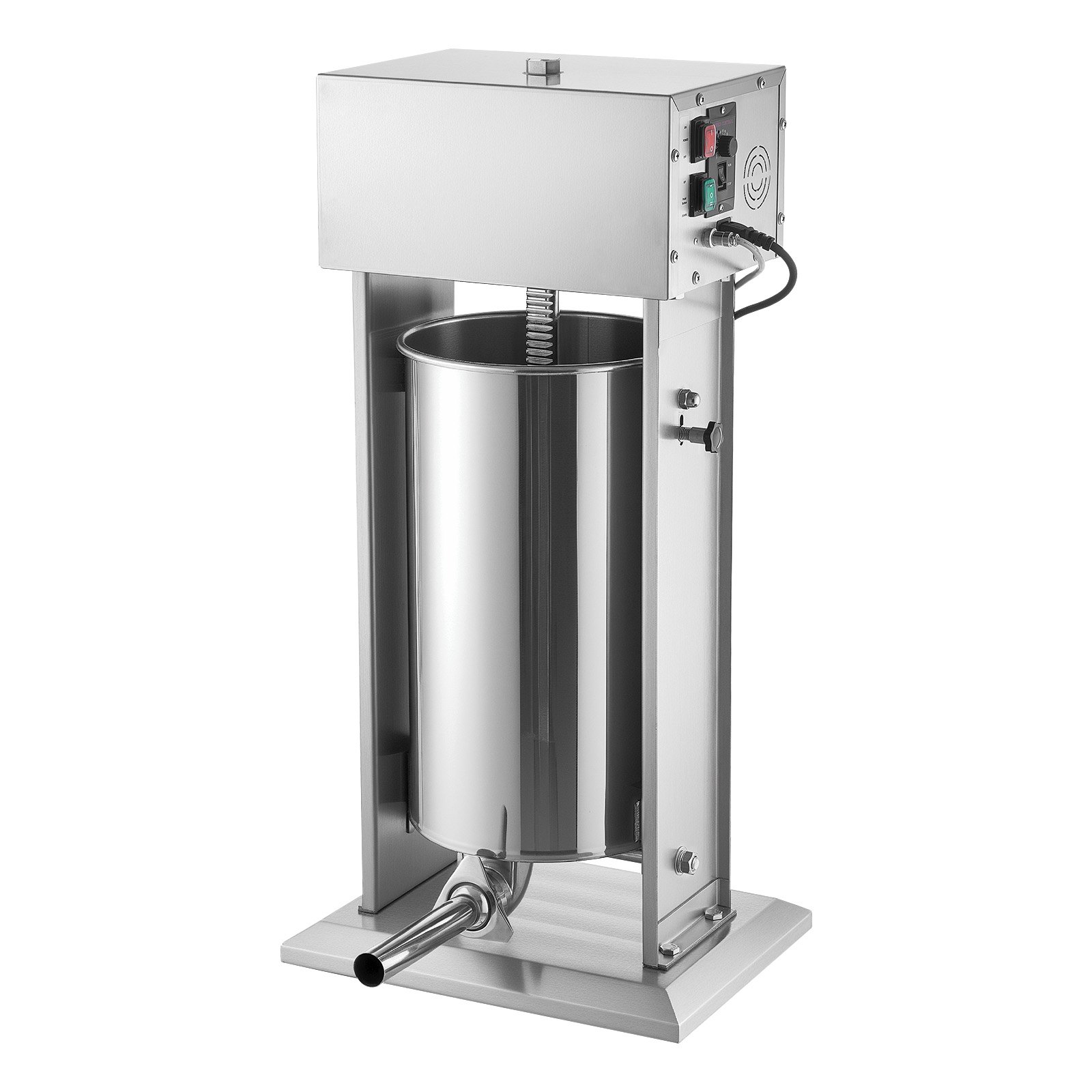 This Electric Sausage Stuffer is engineered for durability and efficiency, featuring a heavy-duty stainless steel construction designed to handle up to 55 pounds (25 kilograms) of meat. The vertical meat stuffer includes stepless speed control for precise filling and a foot pedal for convenient hands-free operation. Equipped with five interchangeable stuffing tubes, this versatile appliance accommodates various sausage sizes, making it suitable for both commercial kitchens and home use. Its ergonomic design ensures easy cleaning and maintenance, ensuring reliable performance for sausage production.