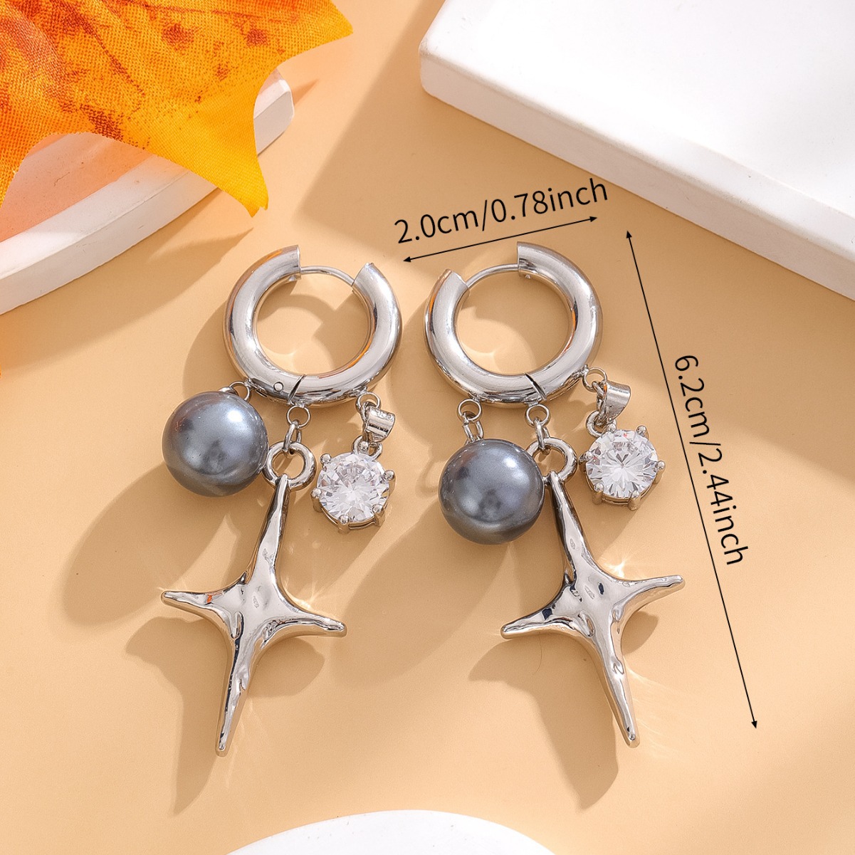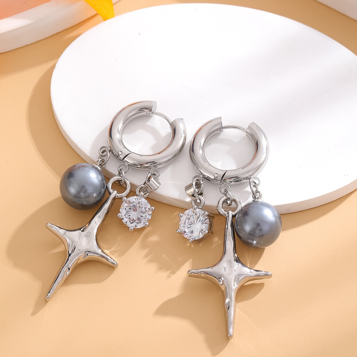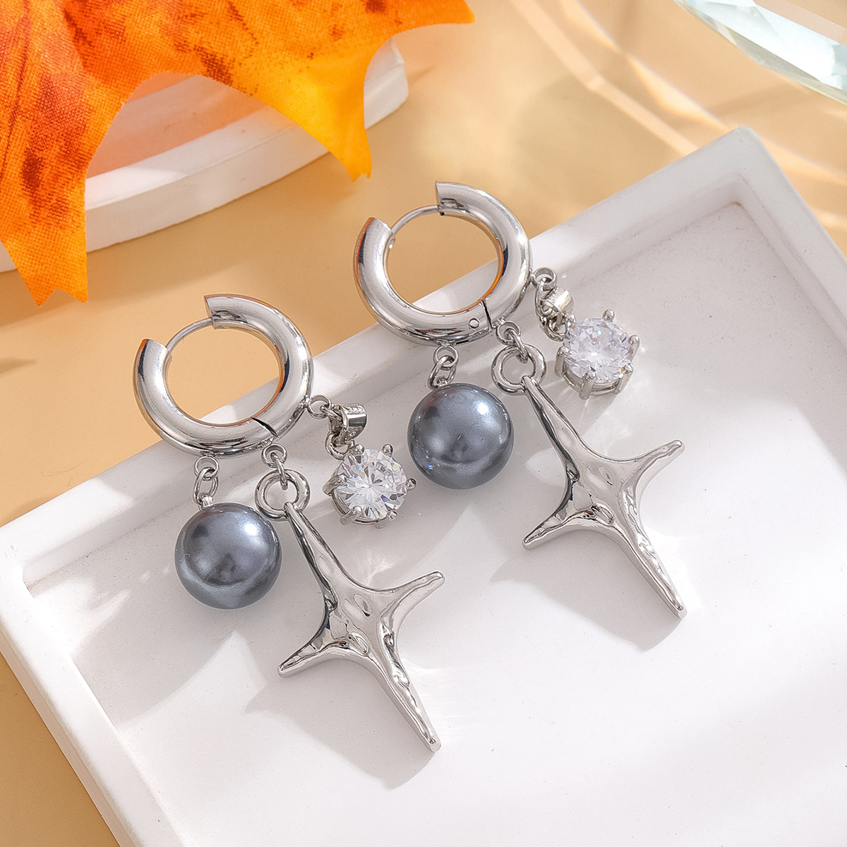 Be the first to review “Elegant And Luxurious Gray Pearl Four Pointed Star Earrings” Cancel reply