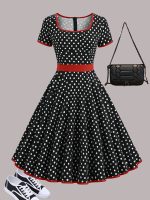 Be the first to review “Elegant Style Square Collar Short Sleeve Polka Dot Zipper Pleated Dress” Cancel reply