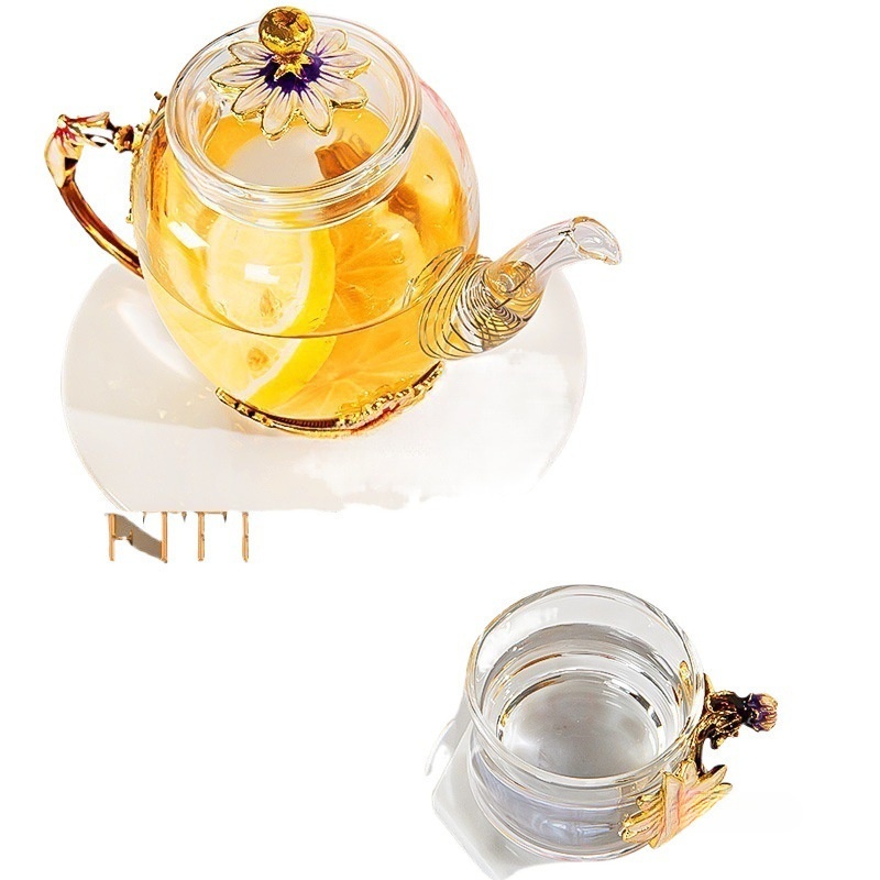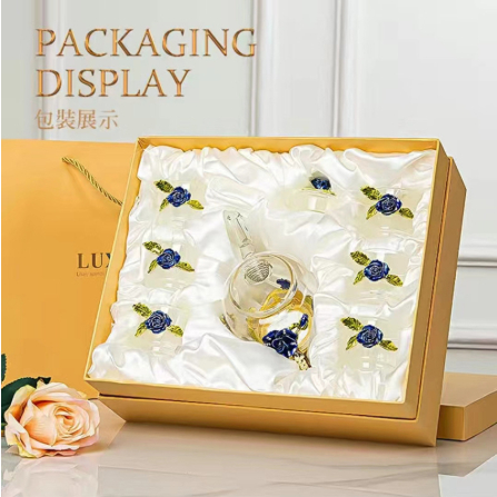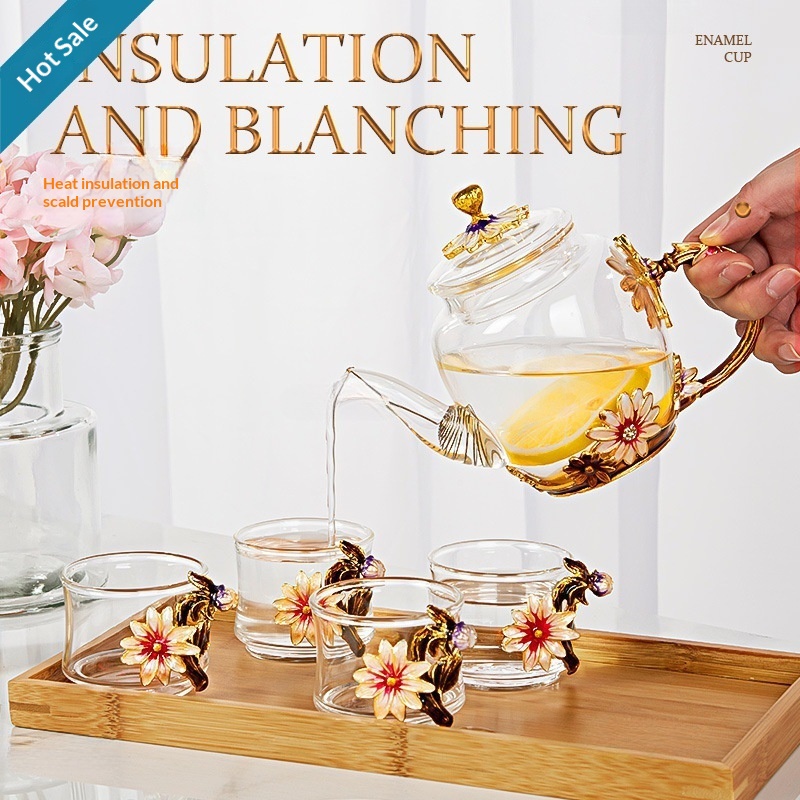 This exquisite tea set combines durable enamel materials with finely crafted glass teacups, designed to enhance your tea-drinking experience. Each glass teacup offers clear visibility of tea color and quality, while the enamel components provide sturdy support and an elegant finish. The set is perfect for both casual and formal occasions, maintaining heat effectively and ensuring comfortable handling. Its compact design makes it convenient for storage and presentation.