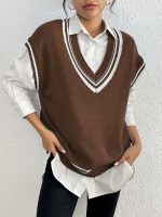 Casual European and American women’s color-block wool vest sweater, designed for stylish layering and warmth.