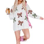 Stylish autumn and winter sweatshirt with bow and sequins, featuring a loose fit and round neck for comfortable, casual wear.