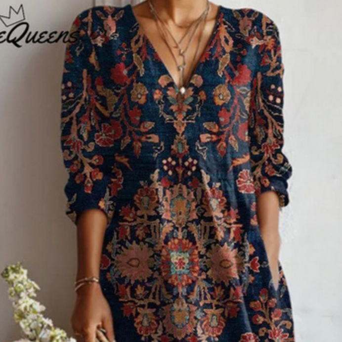 This women’s dress features a loose-fitting silhouette inspired by European and American fashion trends. Crafted with long sleeves and a flattering V-neckline, the dress showcases an attractive printed pattern, combining comfort and style. Ideal for casual wear or semi-formal occasions, it offers a relaxed fit while maintaining a chic appearance.